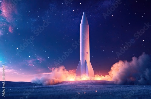 Fototapeta premium Rocket launch into starry night
