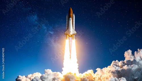 Fototapeta premium Rocket launch into starry night sky