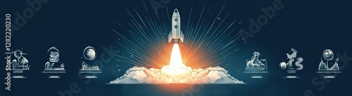 © tech, Fototapeta premium Rocket Launch Motivation Success Icon Progress Achievement Business Leadership Strategy