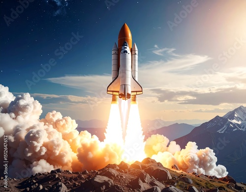 © Jaya, Fototapeta premium Rocket launch over mountains