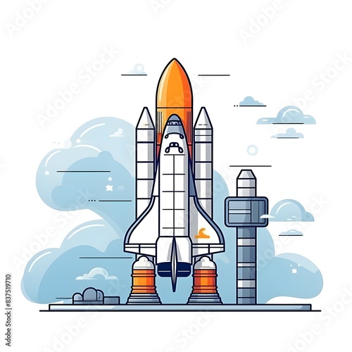 Fototapeta premium Rocket Launch Pad Futuristic Design Cartoon Front View Complementary Color...