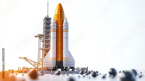 © Ketsaratchaya, Obraz premium Rocket launch pad isolated on white background
