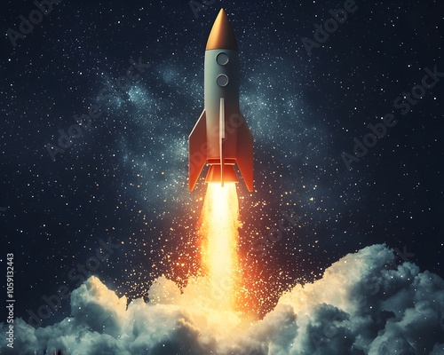 © Bussakon, Obraz premium Rocket Launch Progress Bar Symbolizing Buildup to Major Event
