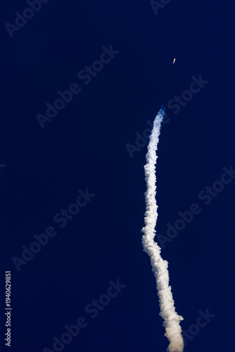 © Parilov, Fototapeta premium Rocket launch with smoke trail against clear blue sky