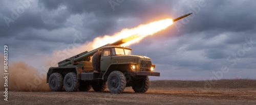 © ckybe, Naklejka premium Rocket launcher firing a missile in a live demonstration exercise.