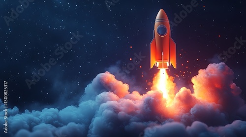 Obraz premium Rocket Launching from Laptop Screen with Explosive Flames, A rocket launching...