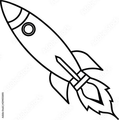 Fototapeta premium Rocket launching into space line art illustration.