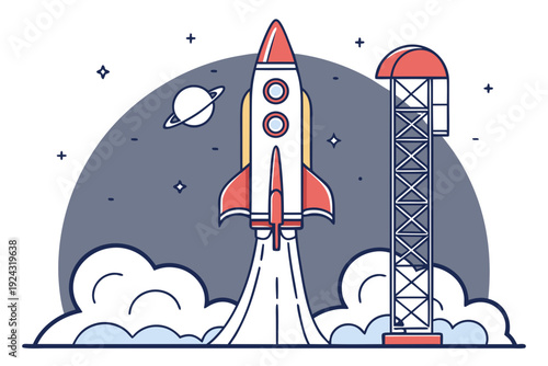 Fototapeta premium Rocket Launching into Space with Planet and Stars.