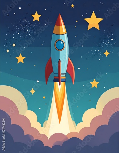 © Kari, Obraz premium Rocket launching into starry night sky (1)