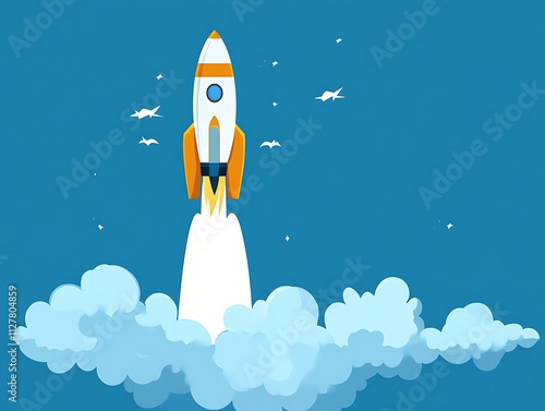 Fototapeta premium Rocket Launching Through Clouds Into Space