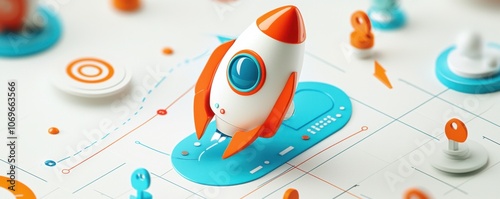 © JCreative, Obraz premium Rocket launching toward new heights exploring the dynamics of growth through upward trends and innovation