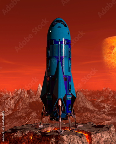 © DM7, Obraz premium rocket on the red planet is ready to take off