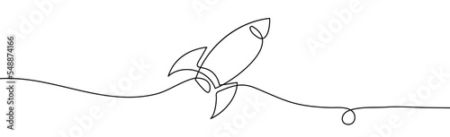 Obraz premium Rocket one line. Vector illustration continuous, simple retro spacecraft....