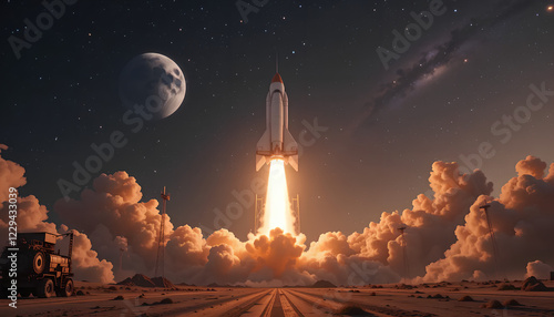 © artmozai, Obraz premium Rocket Ship in the Clouds and Space
