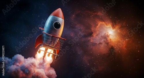 Obraz premium Rocket Shopping Cart: E-commerce Launch Concept