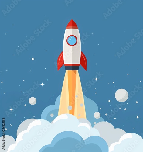 © Jaemie, Fototapeta premium Rocket Soaring Into the Sky - Metaphor for Success, Progress, and Dream Chasing