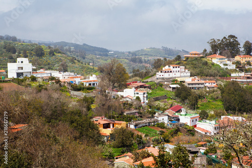Naklejka premium Rocks and forests, fields, houses near Roque Nublo Tejeda, Gran Canaria,...