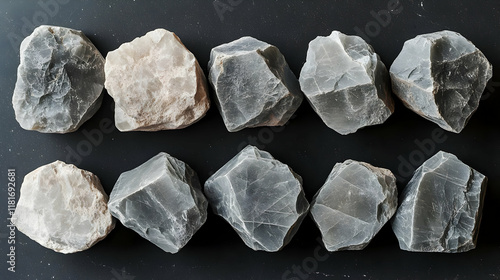© Siasart Stock, Naklejka premium Rocks and Minerals Display: Exploring Textures and Colors on Black Background