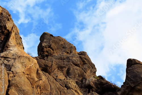 Fototapeta premium Rocks stones in nature against a blue sky. sunrise nepal morning concept....