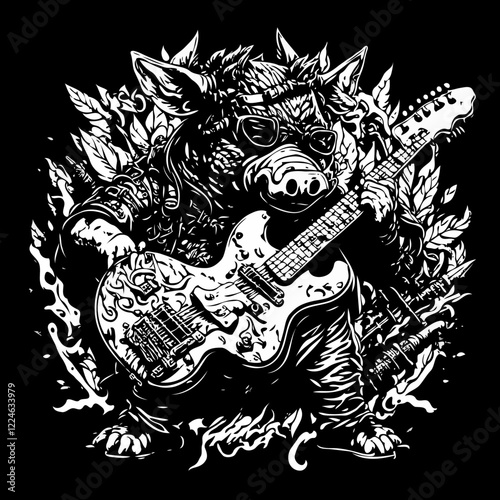 Fototapeta premium Rockstar Wild Boar – Black & White Stencil Art