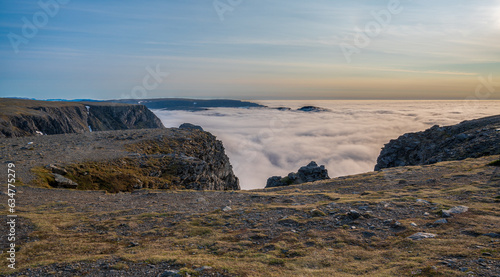 © Denis, Obraz premium Rocky cliff and wonderful view of the clouds below