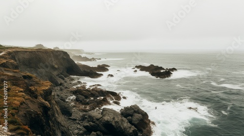 © Voilla, Obraz premium Rocky cliff side view and ocean