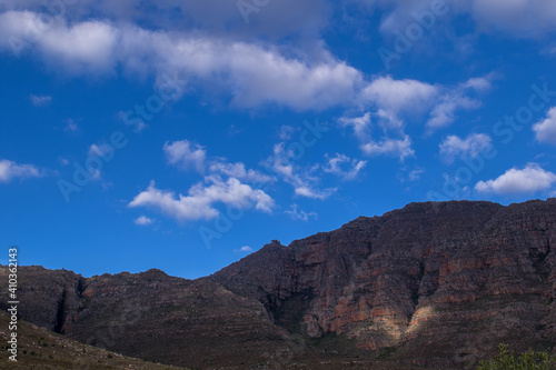 © Richard, Fototapeta premium Rocky cliffs, blue sky and white clouds image for background use in horizontal format
