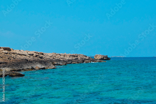 © NATALIIA TOSUN, Fototapeta premium rocky coastline on turquoise sea background