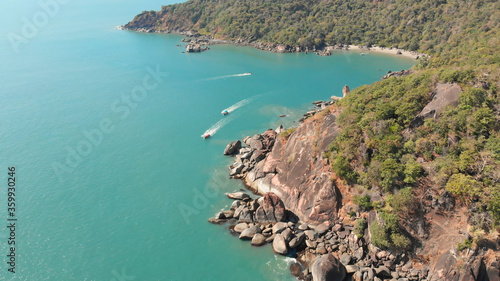 © Довидович Михаил, Fototapeta premium Rocky hills near Butterfly Beach. Goa India. Drone video.