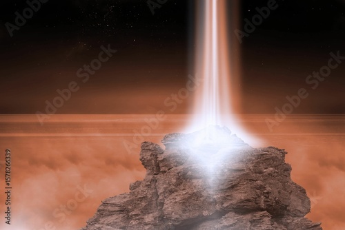 © vectorfusionart, Obraz premium Rocky landscape with light beam