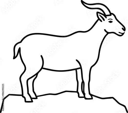 © Bappaditya Roy, Fototapeta premium Rocky Ledge Goat Adventure Captured in Vector Illustration