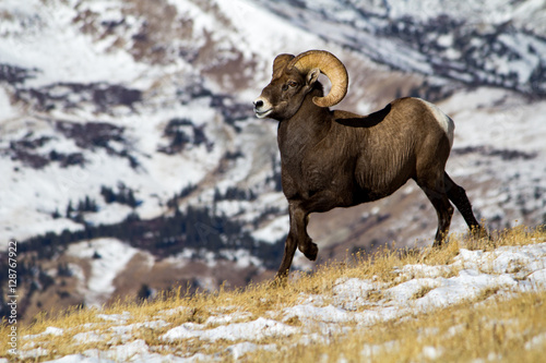 © Caleb, Naklejka premium Rocky Mountain Bighorn Sheep on a snowy mountainside