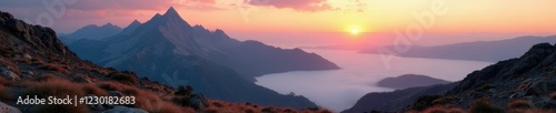 © retirementfun, Obraz premium Rocky mountain front landscape at dawn with mist, nature, western, mountains