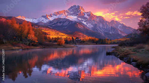 Fototapeta premium Rocky mountain landscape a vibrant sunrise
