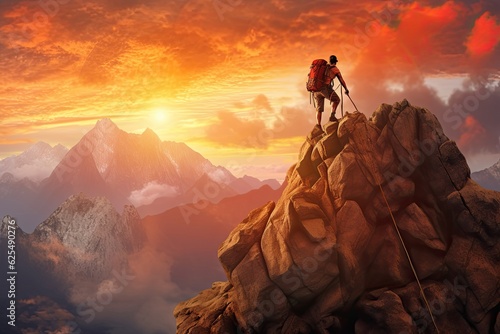 Fototapeta premium Rocky Mountain Peak: Conquering New Heights with an Adventurous Hiker,...