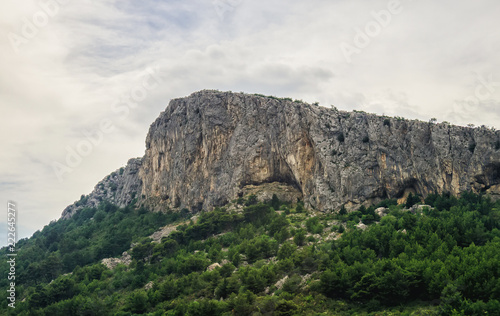 Naklejka premium Rocky mountains cliffs near the forest area.