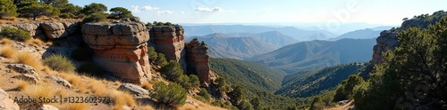 Naklejka premium Rocky outcrops and trees near Roosevelt Point, landforms, forest, desert