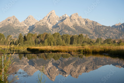 © jesus, Obraz premium Rocky peaks of the Grand Tetons reflected in the river