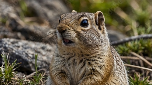 Naklejka premium Rocky Refuge: An Intimate Look at a Northern Idaho Ground Squirrel