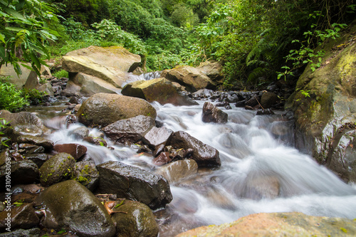 © MonicaPriscilla, Obraz premium rocky river rafting area small waterfall in the forest in indonesia