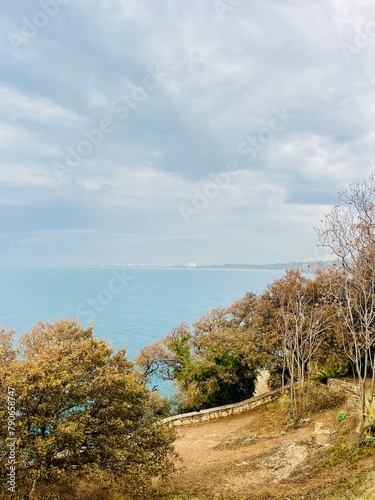 © Oksana, Fototapeta premium Rocky sea coast, cloudy sea view