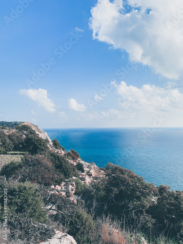 Fototapeta premium Rocky sea coastline, blue sea, seascape