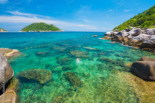 © themorningglory, Fototapeta premium Rocky seashore beach turquoise sea water