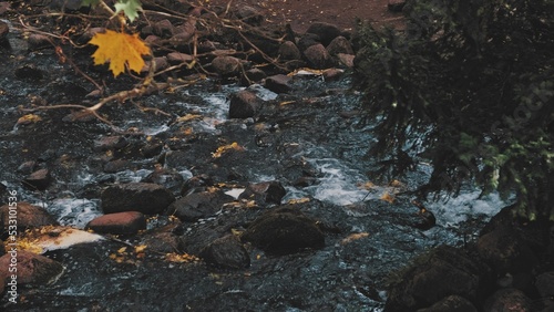 © rohawk, Obraz premium Rocky Stream Creek Cascade on Moody Autumn Day Slow Motion