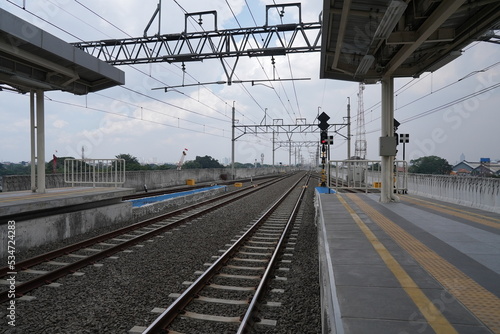 © LimAlverFirmaz, Naklejka premium Rocky train rail in near the train station at noon.