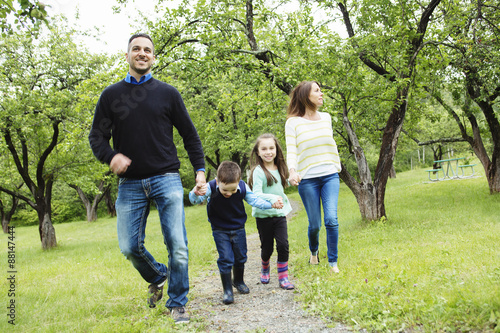 © Louis-Paul Photo, Obraz premium rodzina w lesie, wspólna zabawa