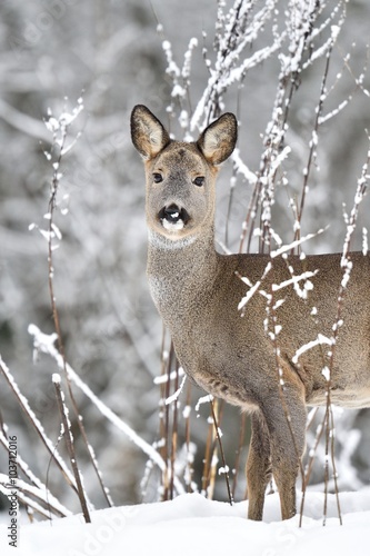 © Erik Mandre, Fototapeta premium Roe deer (Capreolus capreolus) in winter. Roe deer with snowy background. Roe deer on snow.