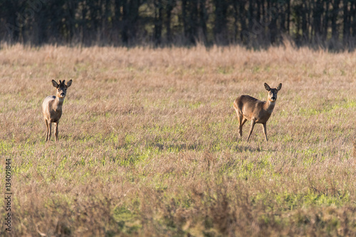 Fototapeta premium Roe deer (Capreolus capreolus) male and female in field. Small elegant deer...