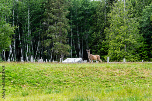 Fototapeta premium roe deer feeding in a field of green grass summer nature