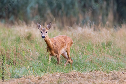 © Branislav, Obraz premium Roe deer female (capreolus capreolus), standing in a meadow near reeds